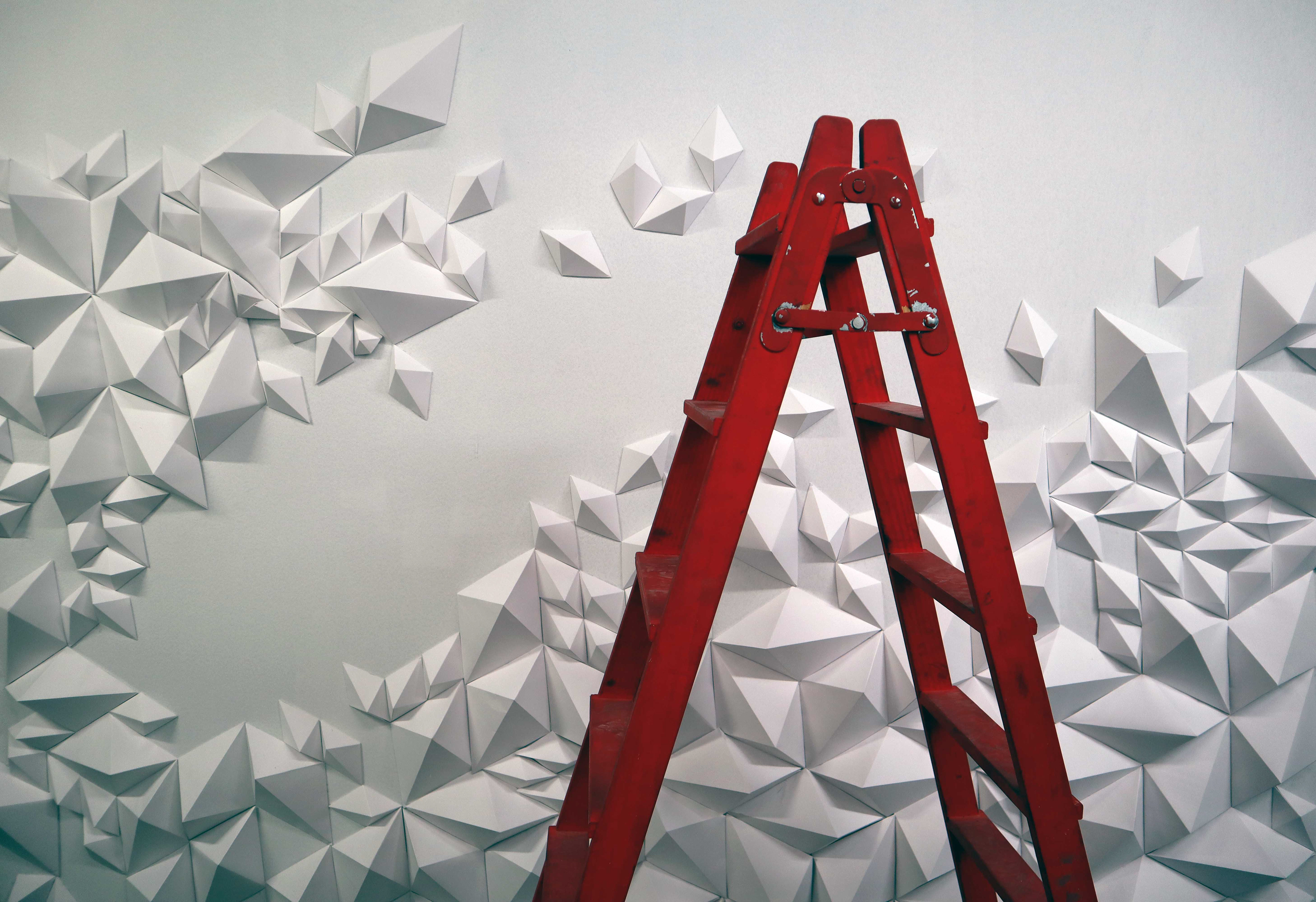 Geometric paper art wall made for El corte Inglés new home deco 2020 catalog.